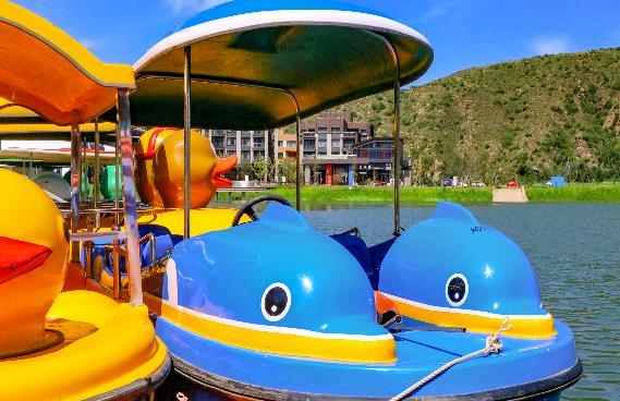 可体验脚踏船、皮划艇、水上悠波球等多种湖上游乐项目,和伙伴一起同舟共济,感受波浪起伏的快乐,享受征服和驾驭的快感。