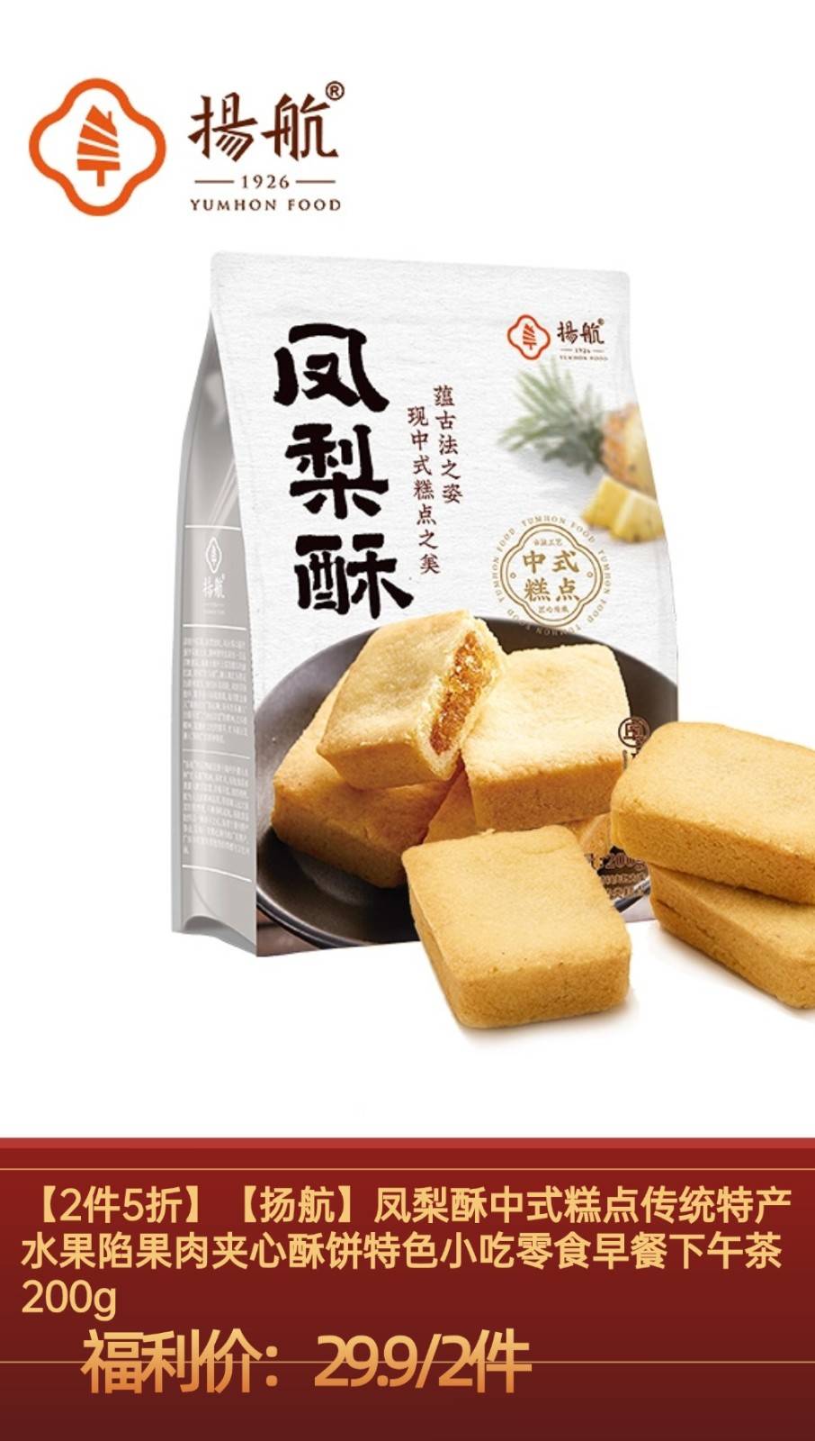 套餐内容:凤梨酥中式糕点传统特产水果陷果肉夹心酥饼200g