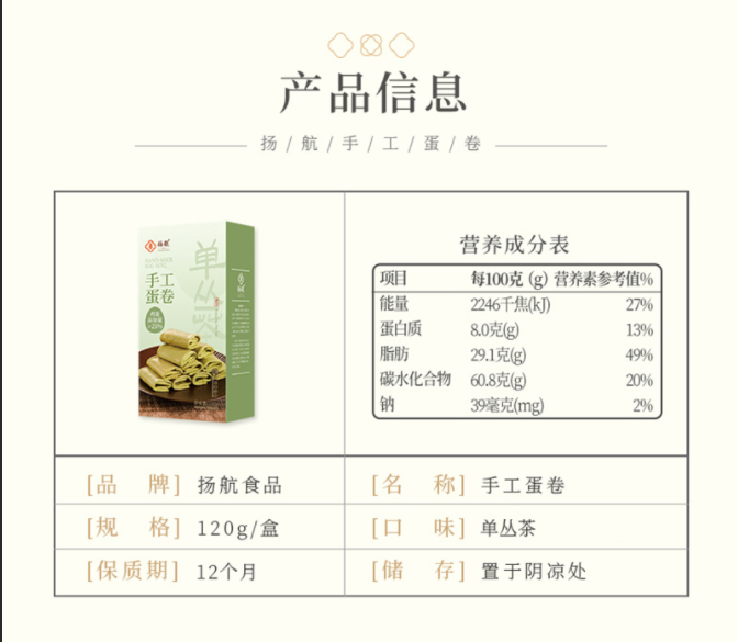 套餐内容:【扬航】120g手工蛋卷(单丛茶)特色小吃零食下午茶