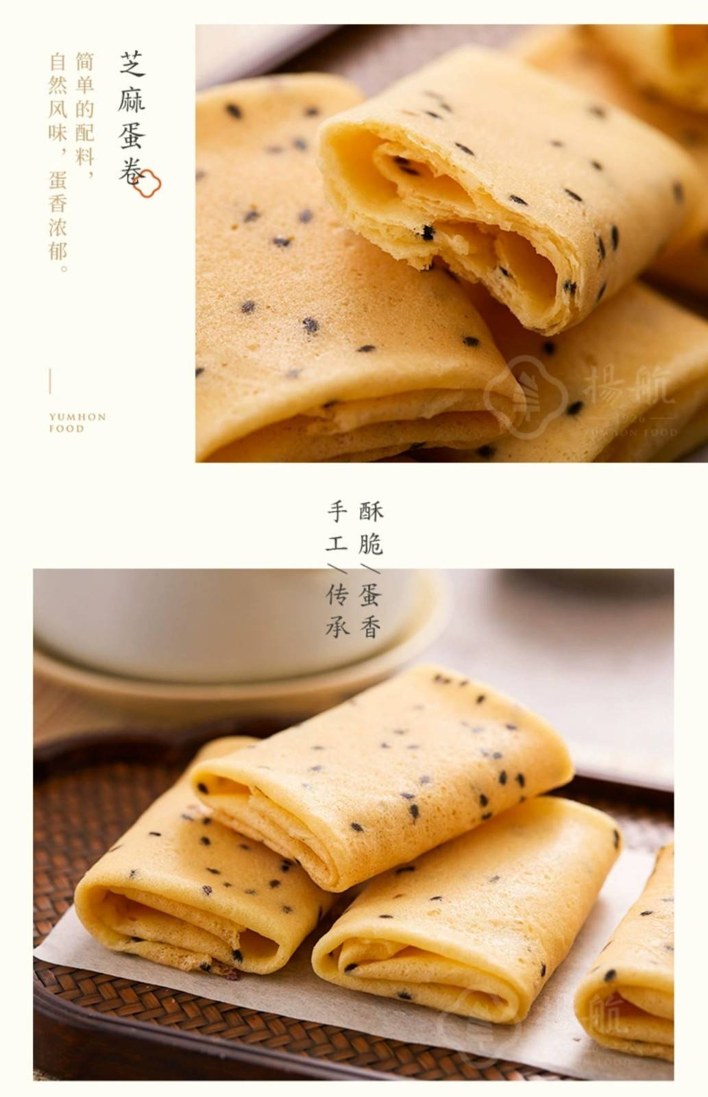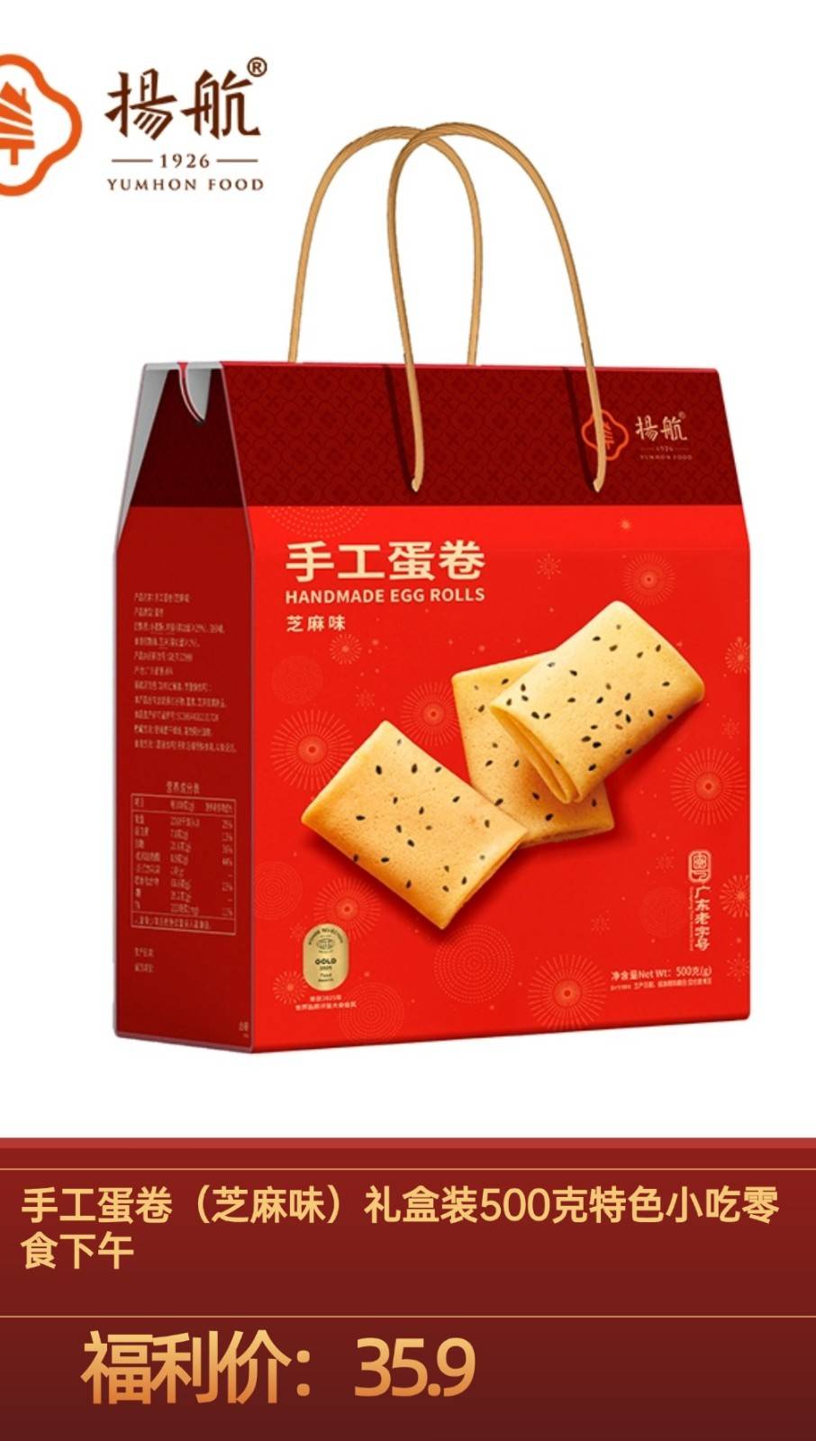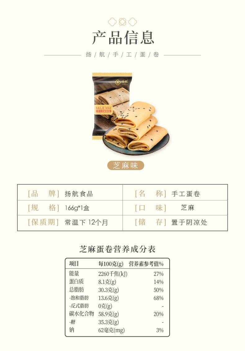套餐内容:【扬航】手工蛋卷(芝麻味)礼盒装500克特色小吃