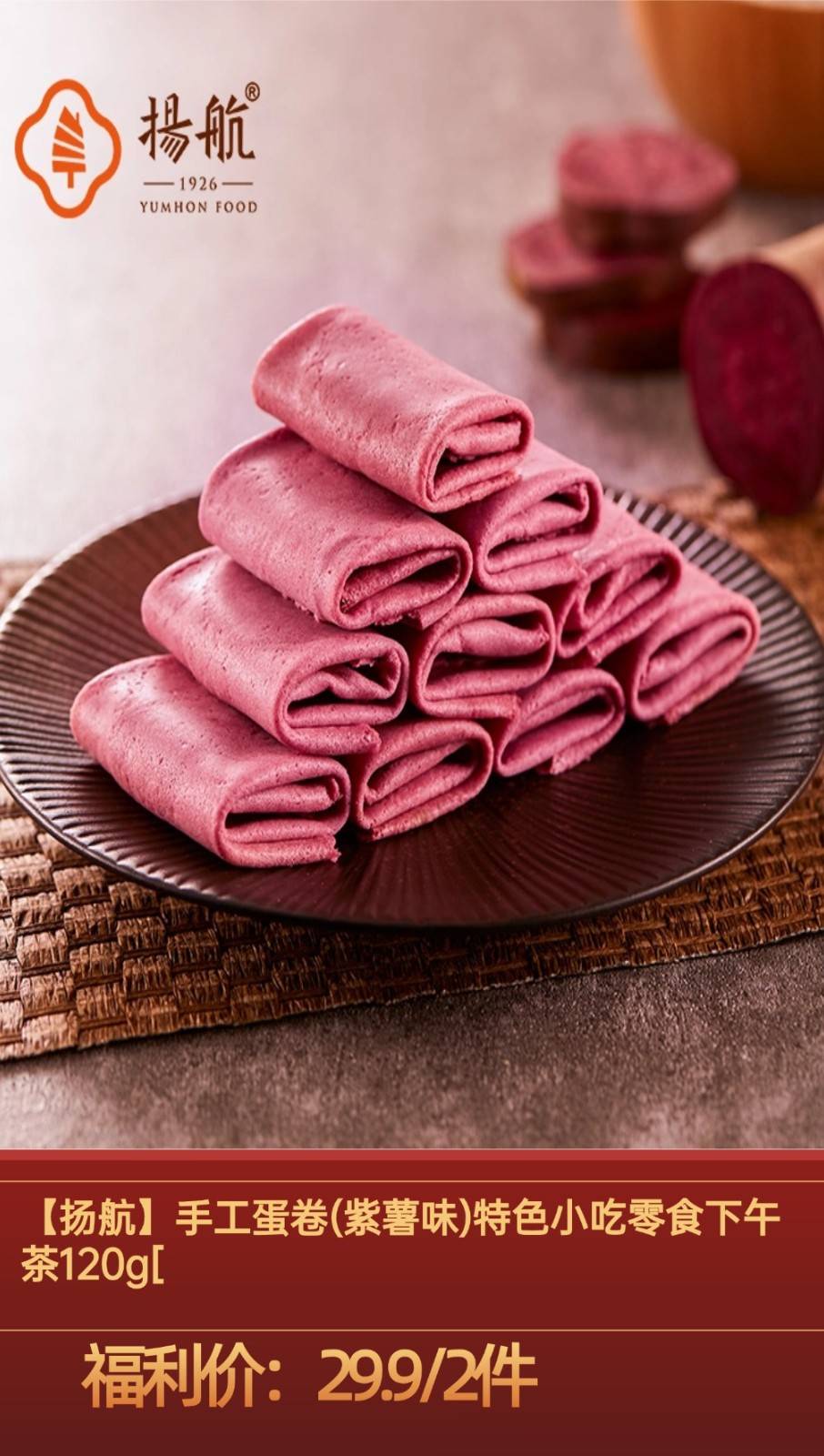 套餐内容:【扬航】手工蛋卷(紫薯味)特色小吃零食下午茶120g