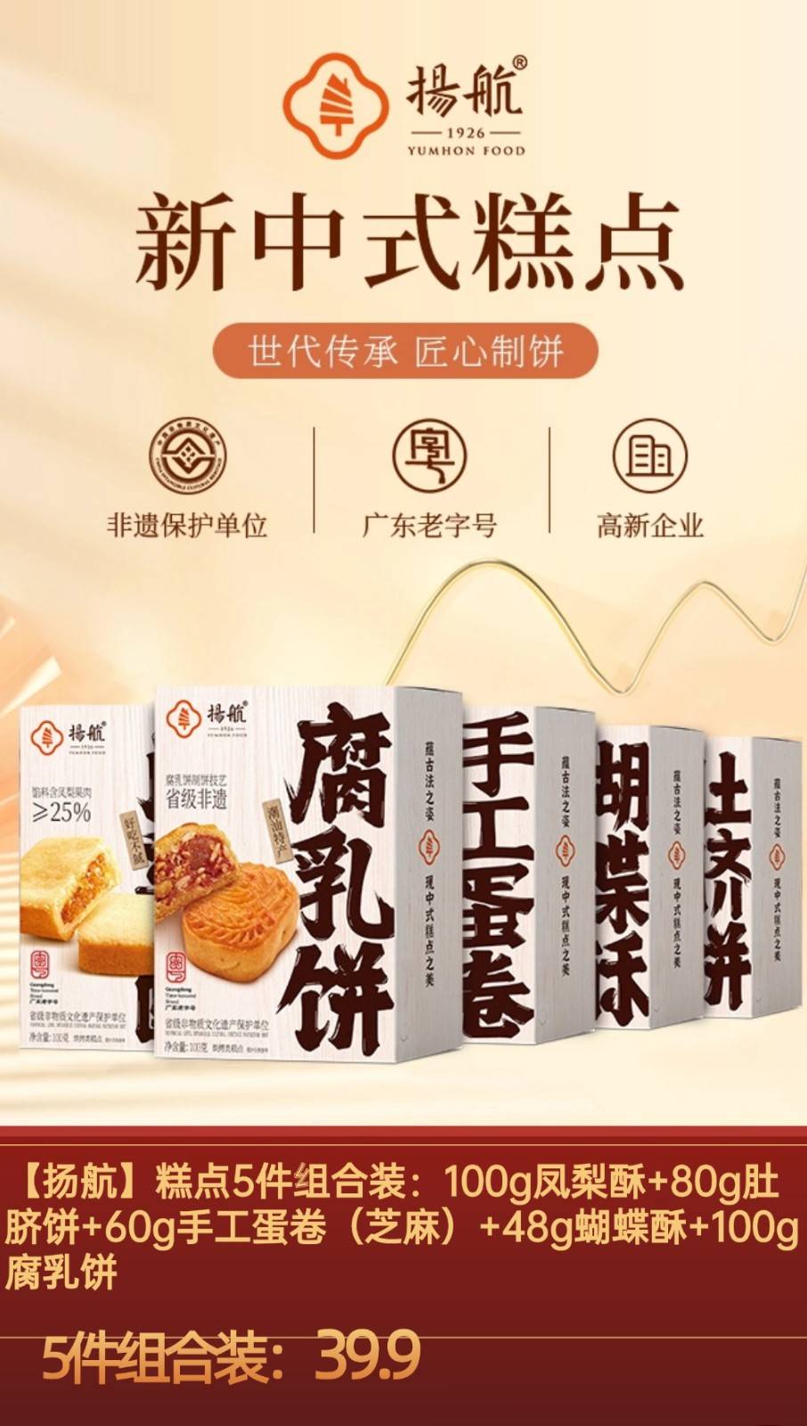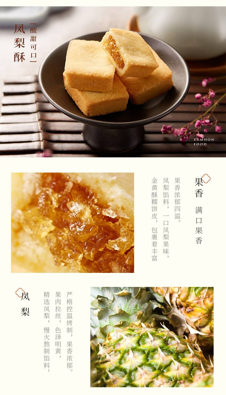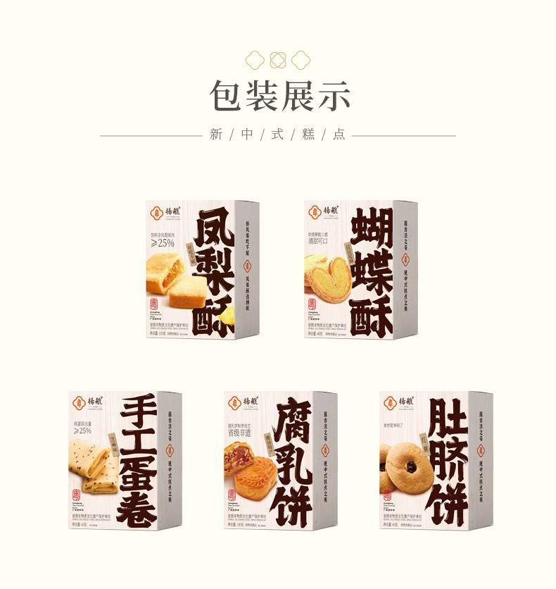 套餐内容:【双12专享】扬航糕点100g凤梨酥+80g肚脐饼+60g手工蛋卷(芝麻)+48g蝴蝶酥+100g腐乳饼 组合装