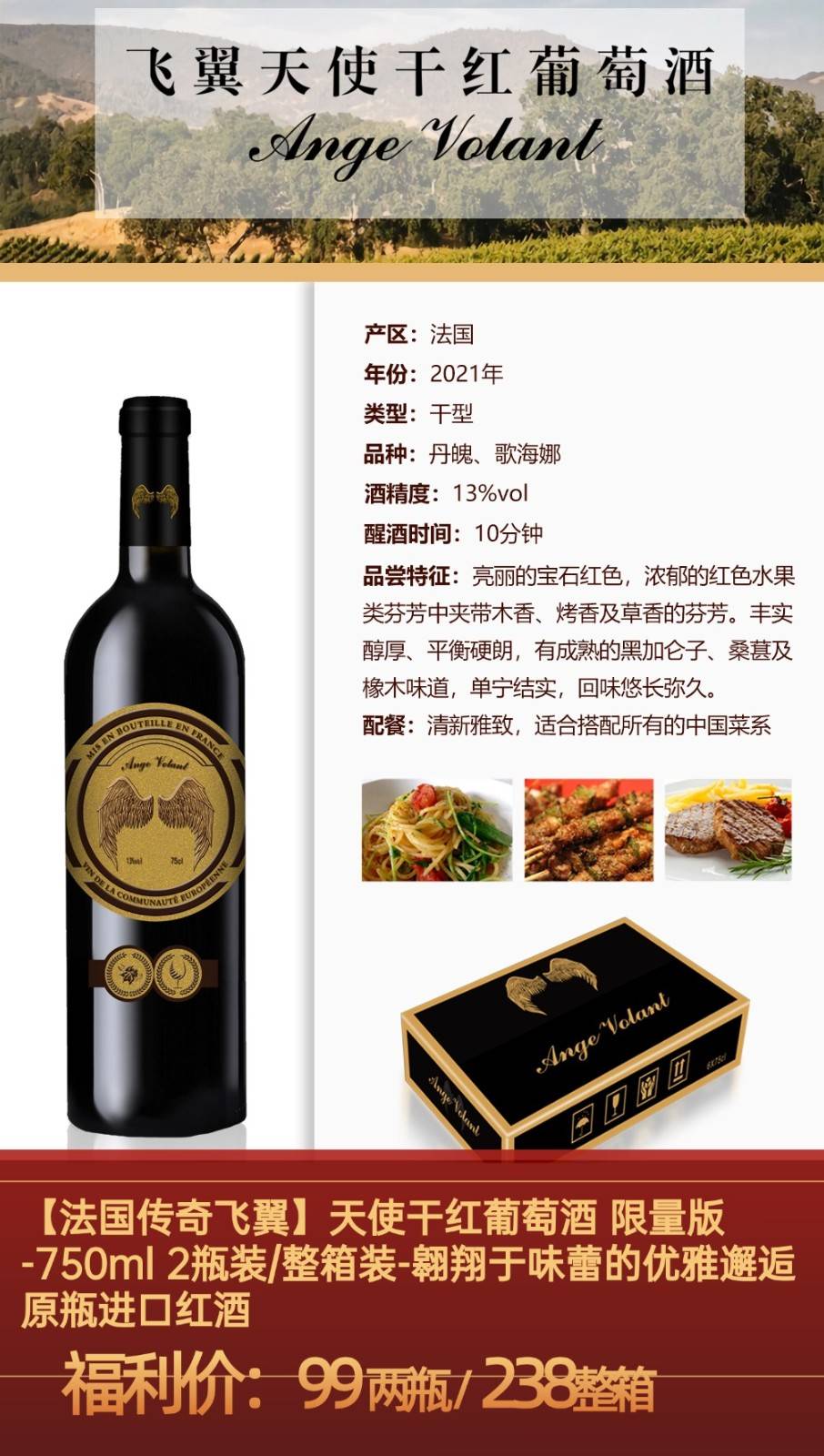 【法国传奇飞翼】天使干红葡萄酒 限量版 -750ml 2瓶装/整箱装-翱翔于味蕾的优雅邂逅 原瓶进口红酒