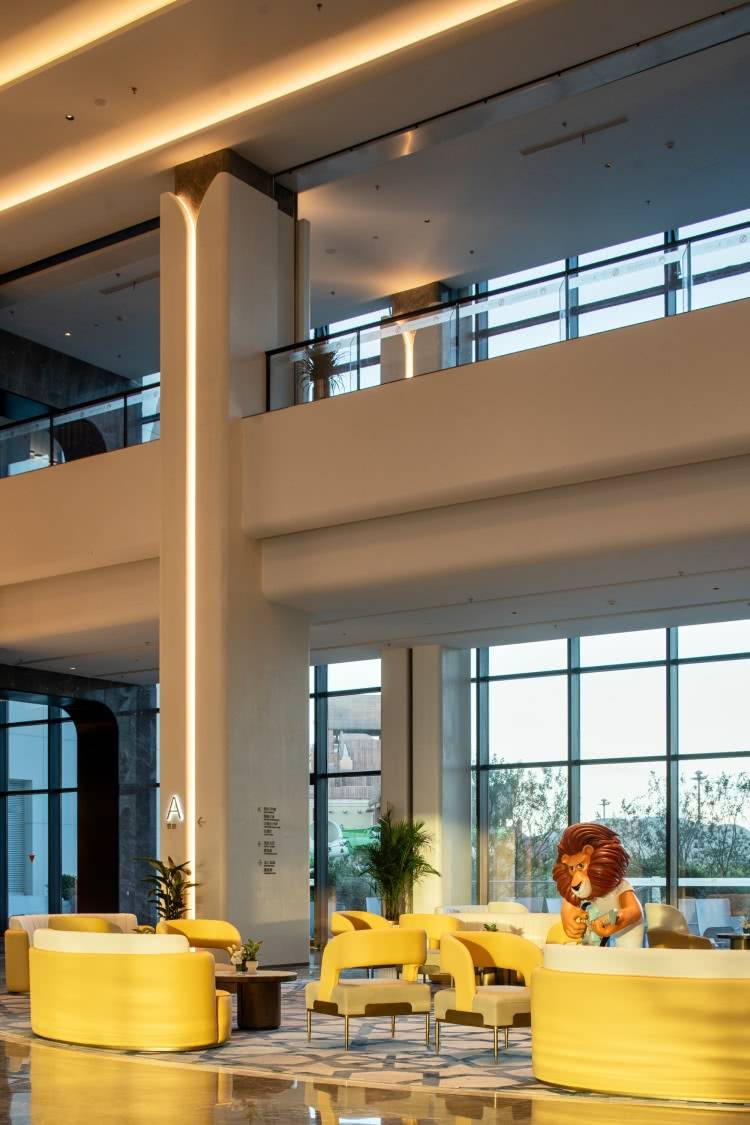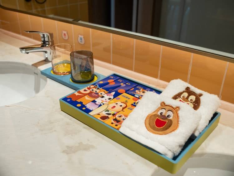 踏入酒店,光头强、熊大、熊二早已热情等候,邀你共赴狂野大陆的奇妙探险!大堂内处处皆是熊出没元素,仿佛施了魔法,瞬间将小朋友带入梦幻般的童话王国。