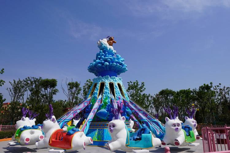 这里的“熊出没”主题过山车飞越狗熊岭和可爱满分的柯基跑跑车是镇上的热门项目。