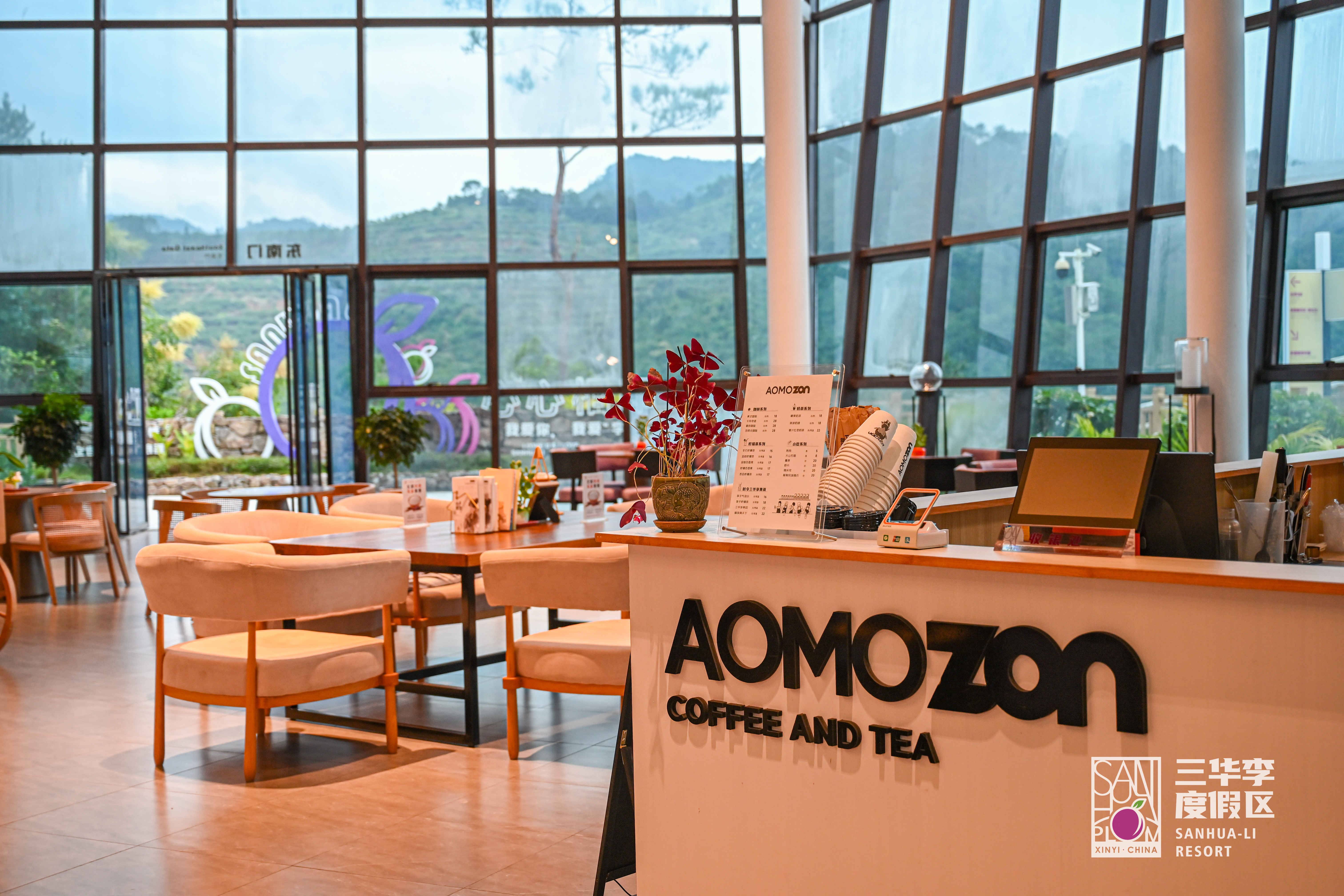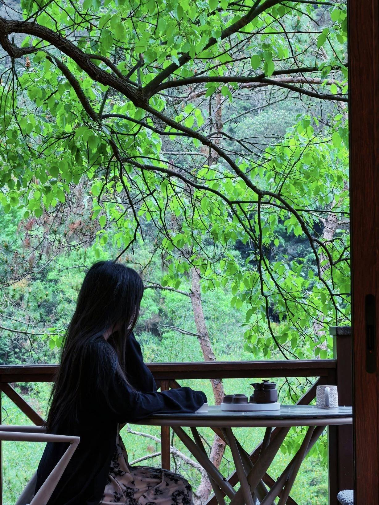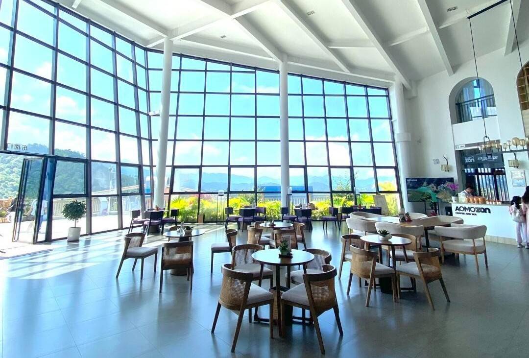 咖啡厅依山而建,坐在明亮的落地窗前,