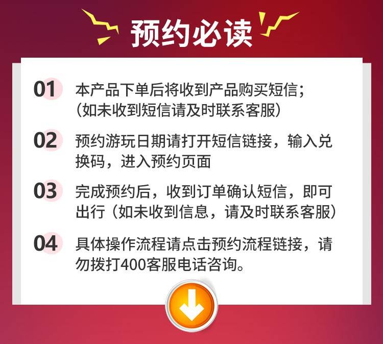 1、下单后会以短信形式将预约凭证发送给您,收到短信后请登录短信中的预约网址凭短信券号进行预约。预约提交后不支持改期或取消,平日请至少提前1天18:00前通过短信网址进行预约(不是打酒店电话预约哦!),周末及节假日请至少提前7天预约;酒店房间有限,为确保出游,请尽早预约。因酒店库存有限,兑换入住日期需二次确认,如遇兑换日期无房可改期,介意慎拍!