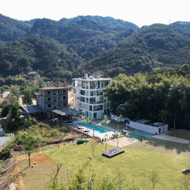 7、公区免费体验:亲子蜂窝互动、恒温山泉水泳池、溯溪、多功能休闲区、千坪草坪营地等